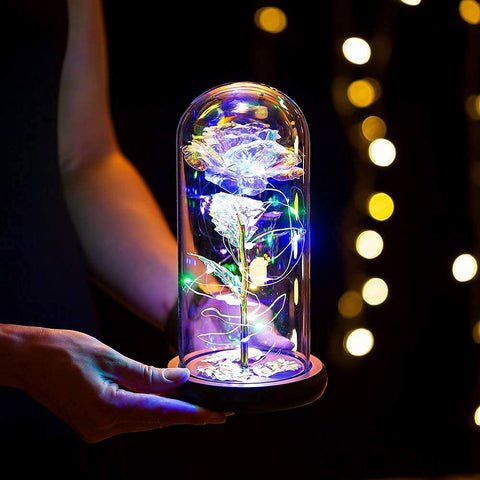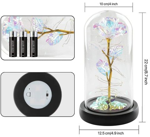 ✔ FINEST QUALITY: Coated in gold foil and stored in a glass dome made of high borosilicate glass. crystal clear. hard texture. and 360° viewable. The galaxy flower rose is made of the finest glass that looks elegant and will never break easily. Each piece is fully handcrafted.