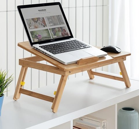 A versatile bamboo side table that is easy to fold and store and is very useful for reading. writing. eating. or working on the laptop on the sofa. bed. carpet. etc.