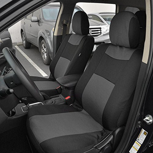 • STYLISH DESIGN – Refresh the look of your vehicle and turn some heads along the way. This full set of seat covers features a stylish two-tone design with stitched accents. making it easy to add a splash of color to your interior.