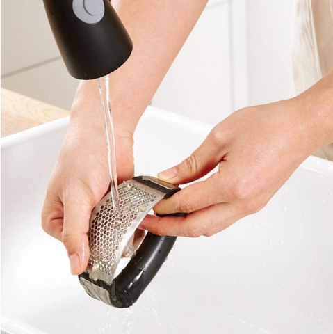 ✔ EASY TO CLEAN: Simply rinse under running water or run through the dishwasher. Garlic is collected on the surface of the rocking garlic press and is super easy to clean! Its compact size makes it very portable and easy to store too!