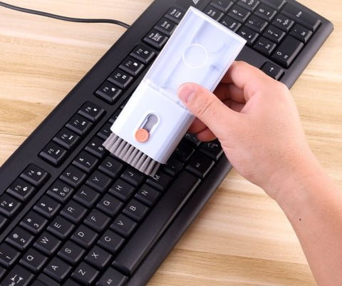 ✔ ALL IN ONE: Kleen™ can effectively deep clean all your electronic devices such as mobile phones. tablets. TVs. keyboards. and many more. It comes with a large retractable bristle brush. concealed keycap puller. dense soft brush. recyclable spray bottle. flocking sponge. and a 3-in-1 cleaning brush. It’s compact so you can keep one in a drawer. one in the car. or in your bag easily.