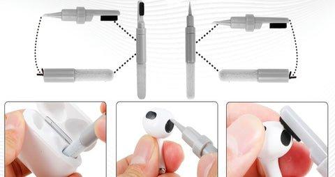 ✔ 3-IN-1 CLEANING PEN: The 3-in-1 cleaning brush is designed with a plastic tip. a high-density brush. and a flocking sponge. This cleaning pen can be used individually for each function or can be freely assembled. The cleaning pen can work by free combination. which makes it easy to use when cleaning tough dirt hidden between cracks and holes in earphones. smartphones. keyboards. laptops. etc